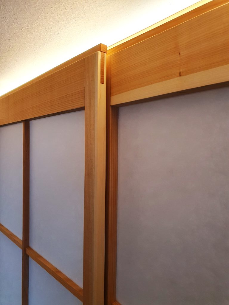Die Konstruktion ist denkbar einfach und schon seit Jahrhunderten im japanischen Raum entwickelt und perfektioniert worden. Dabei werden filigrane Rahmen mit Sprossen rückseitig mit einem dicken Papier bespannt.